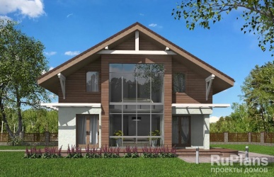 - Одноэтажный дом с мансардой и витражным окном Rg5429